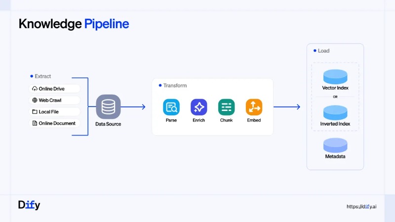 作为国内领先的企业级Agentic AI解决方案平台,Dify通过Knowledge Pipeline——一个可视化、可编排的处理通道,让企业真正掌握从原始数据到高质量上下文的转化全过程。