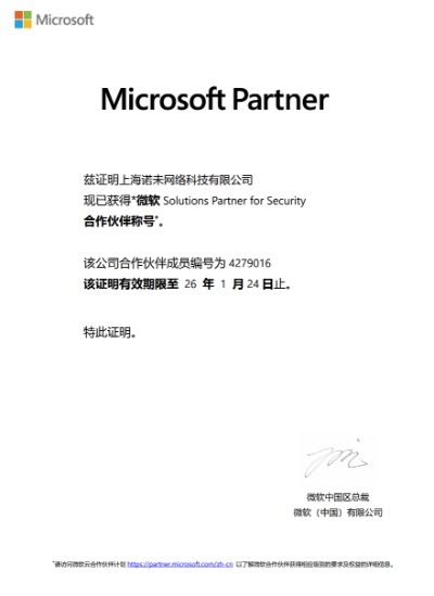 诺未科技已获得如下微软资质: