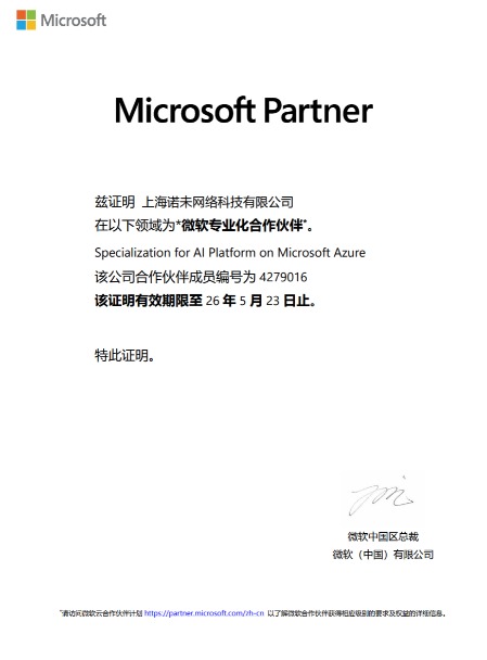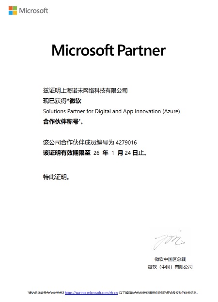 诺未是微软端到端解决方案指定服务商,具备丰富且权威的微软合作伙伴资质:不仅可提供 Microsoft 365 现代化办公工具相关服务,更是微软认证的数字化与应用创新、数据与 AI、专业级云基础架构、IT 安全、专业级 AI 创新、低代码开发等多领域服务伙伴,同时还入选微软生态优选的云供应商和大企业协议服务伙伴(覆盖中国云 / 国际云),能够为客户提供全栈式的微软体系技术与服务支持。