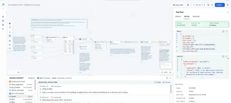- Test Run(测试运行):逐节点执行 Pipeline,查看每步输入输出是否符合预期;