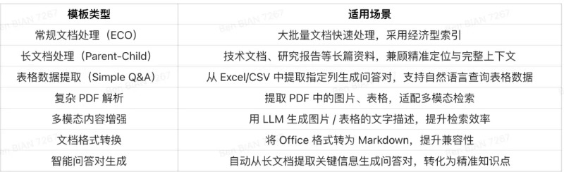 继承 Dify Workflow 画布体验,将 RAG 的 ETL 过程拆分为独立节点(数据源接入、文档解析、分块策略等);
